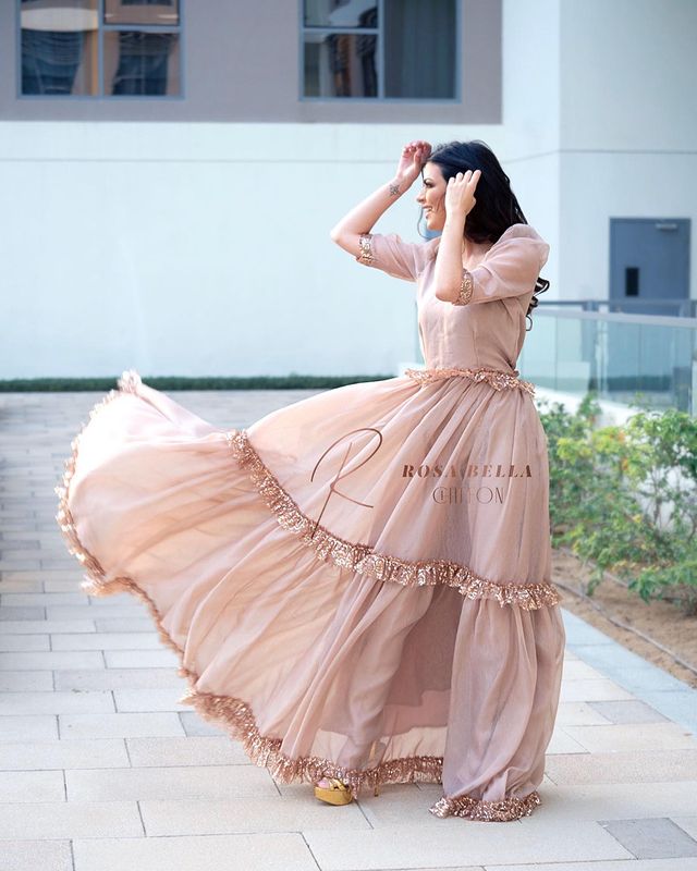 Aubrey dress is crafted with Organza & Metallic Satin underlay with a added touch of rose gold sequins for that extra detail.