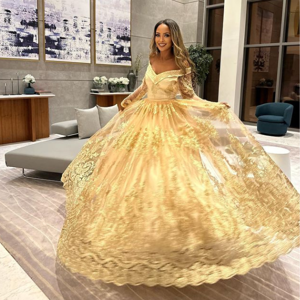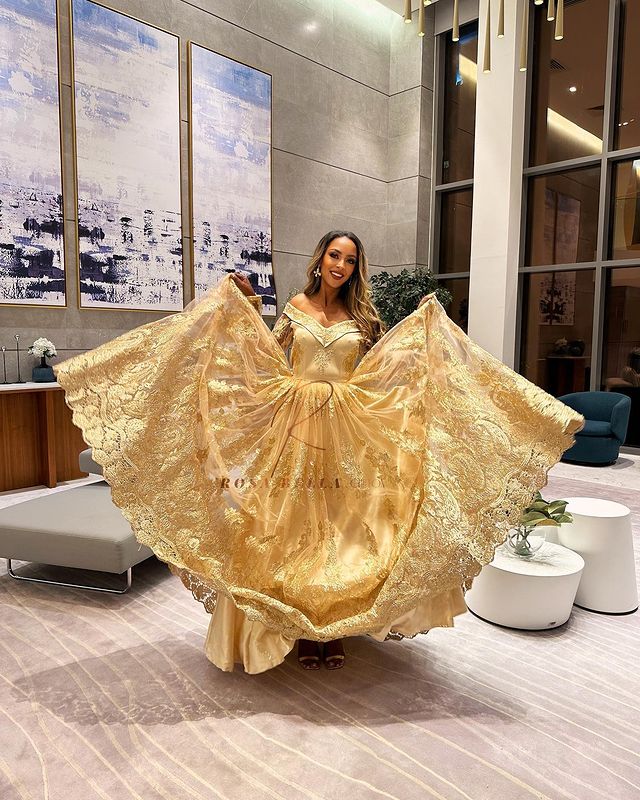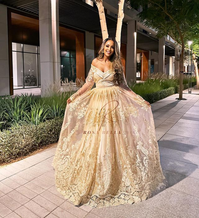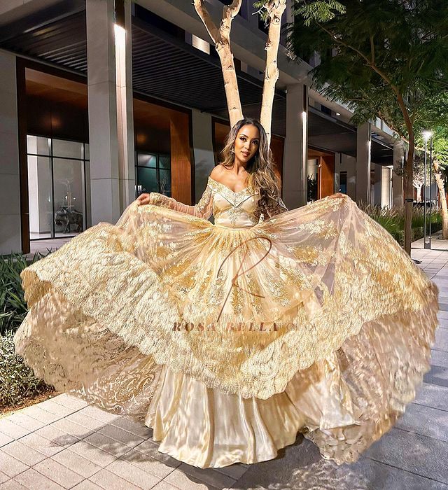 Create a lasting memory with this golden coloured gown. Bella is made of net fabric that has been beautifully thread embroidered with stone. The lining is made of satin for that extra shine. Specially designed for any functions where you want a last impression. The actual finish gown may differ slightly in color and design based on custom order and measurements.