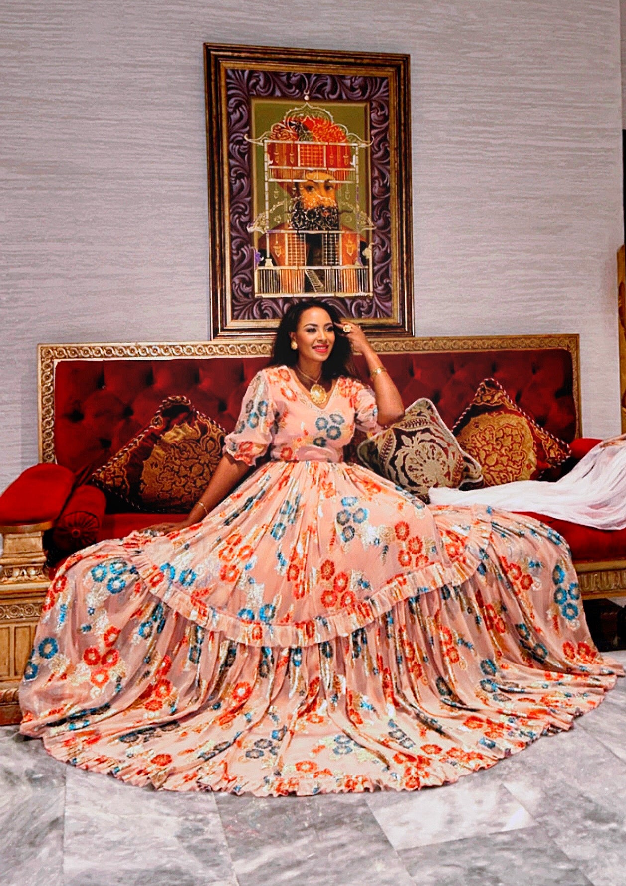 The actual finish chiffon may differ slightly in color and design based on custom order and measurements. Special occasion.