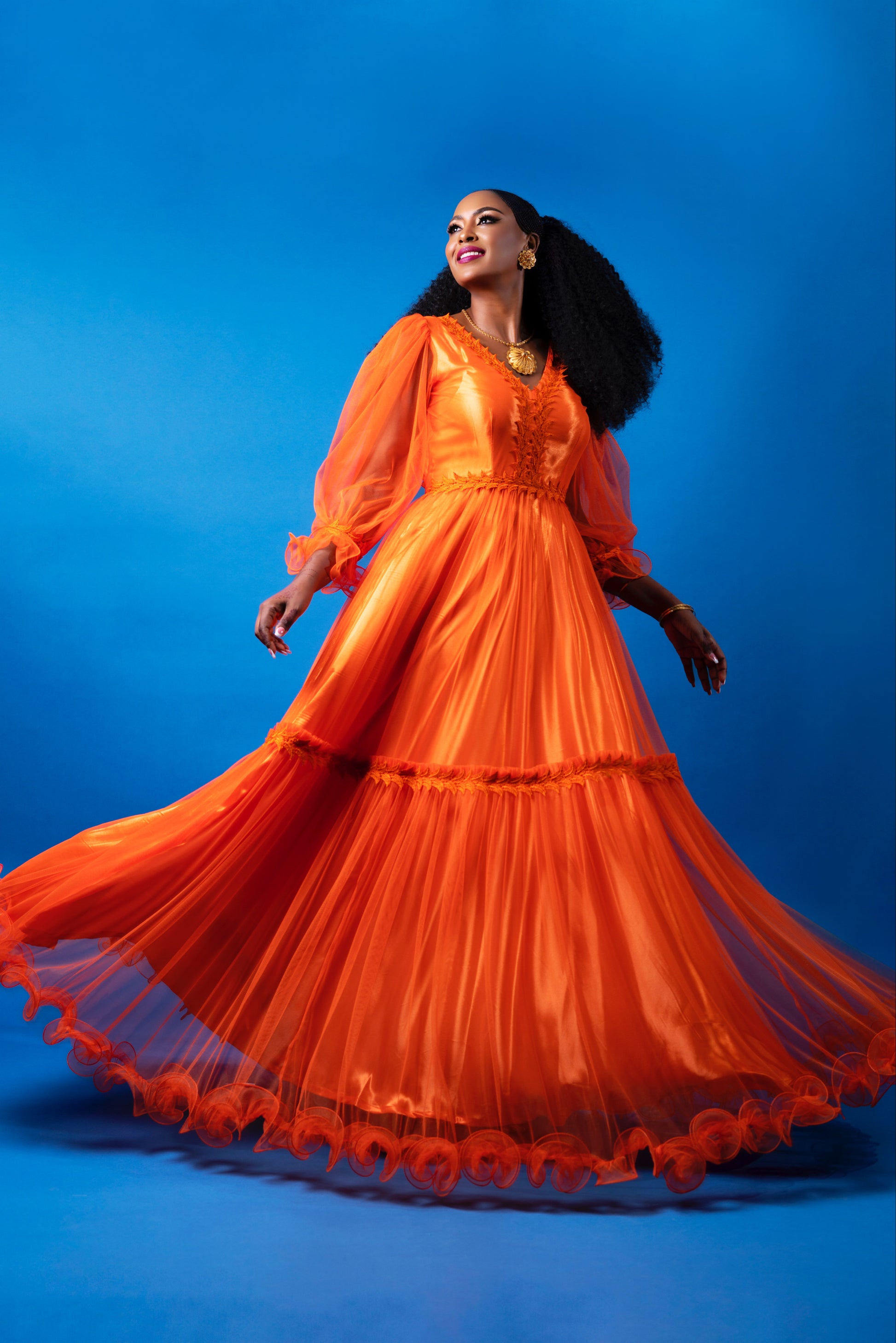 The dress is a classic and fresh maxi dress, accentuating the shape for the women, is made using chiffon material with buttercrepe for lining.