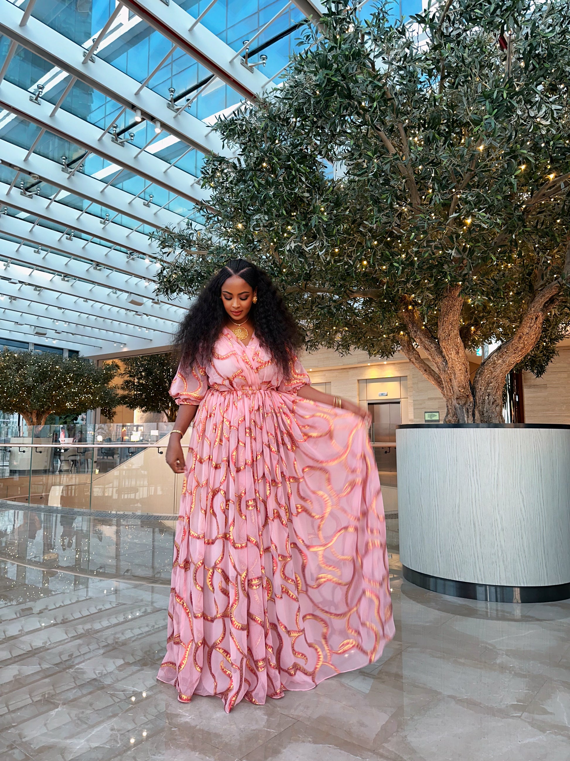 The Pink Bella Chiffon printed maxi dress is classic option for any occasion. Made from silk chiffon, Pink Bella Chiffon will make you feel timeless