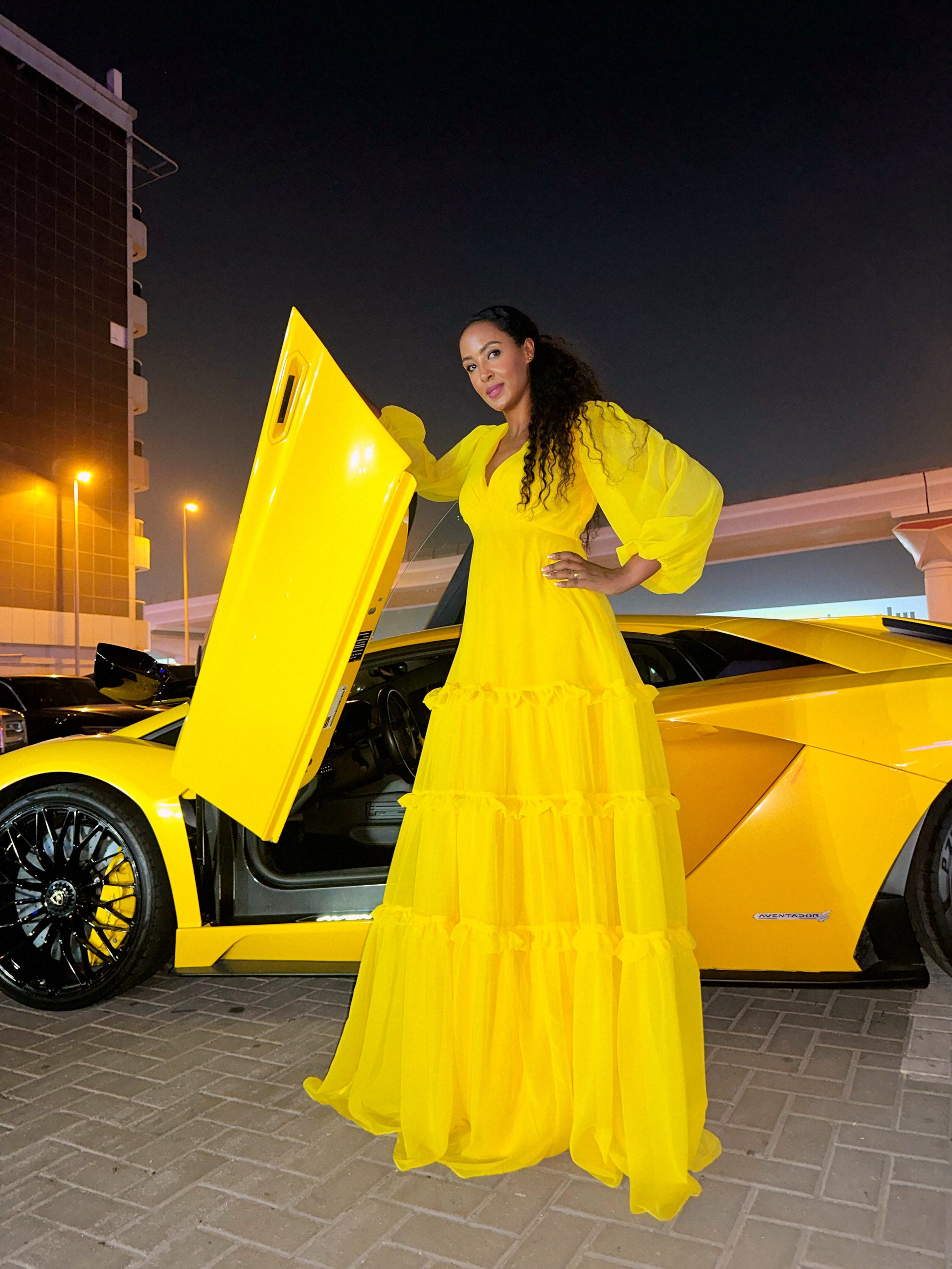 The dress is a classic and fresh maxi dress, accentuating the shape for the women, is made using chiffon material with buttercrepe for lining.