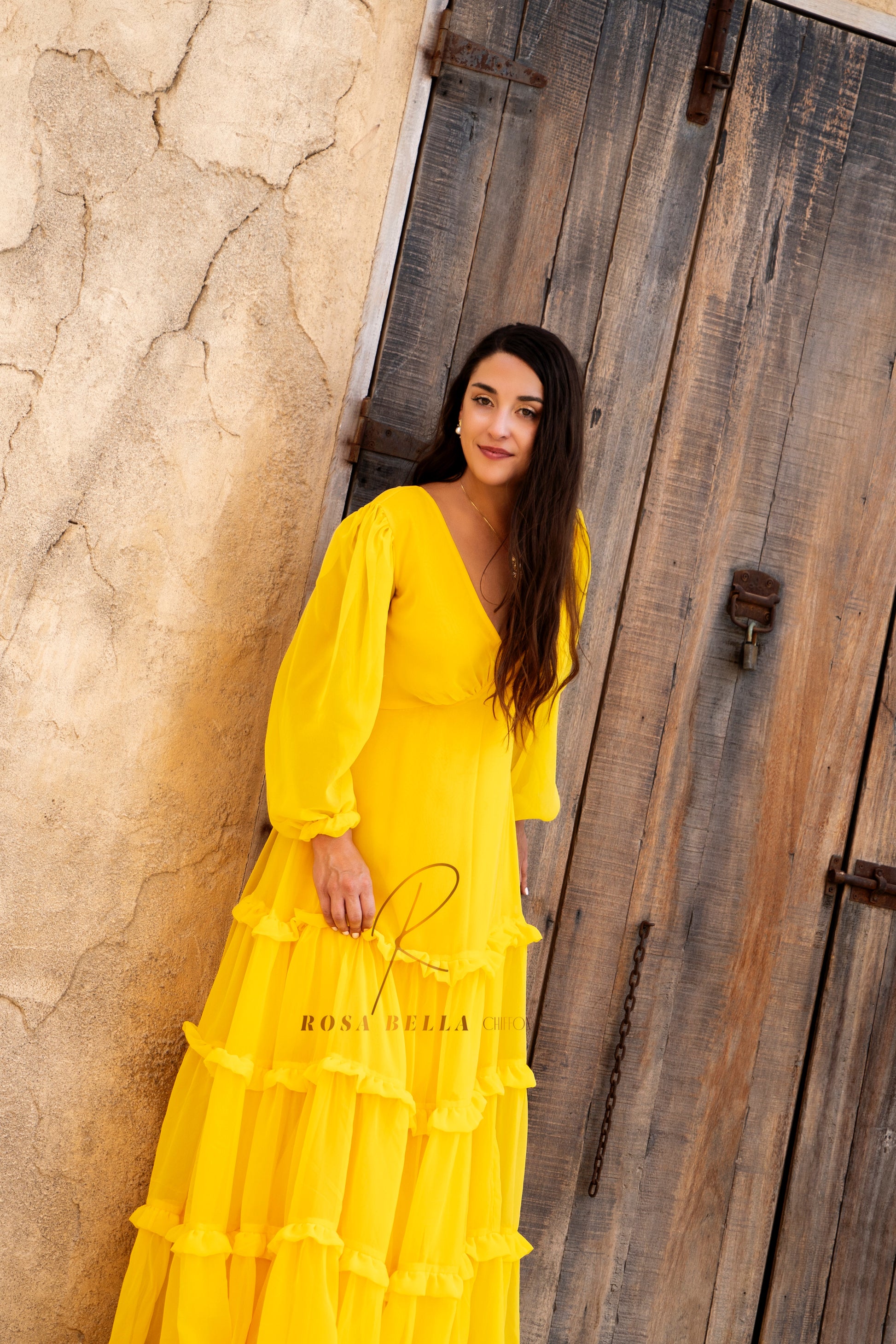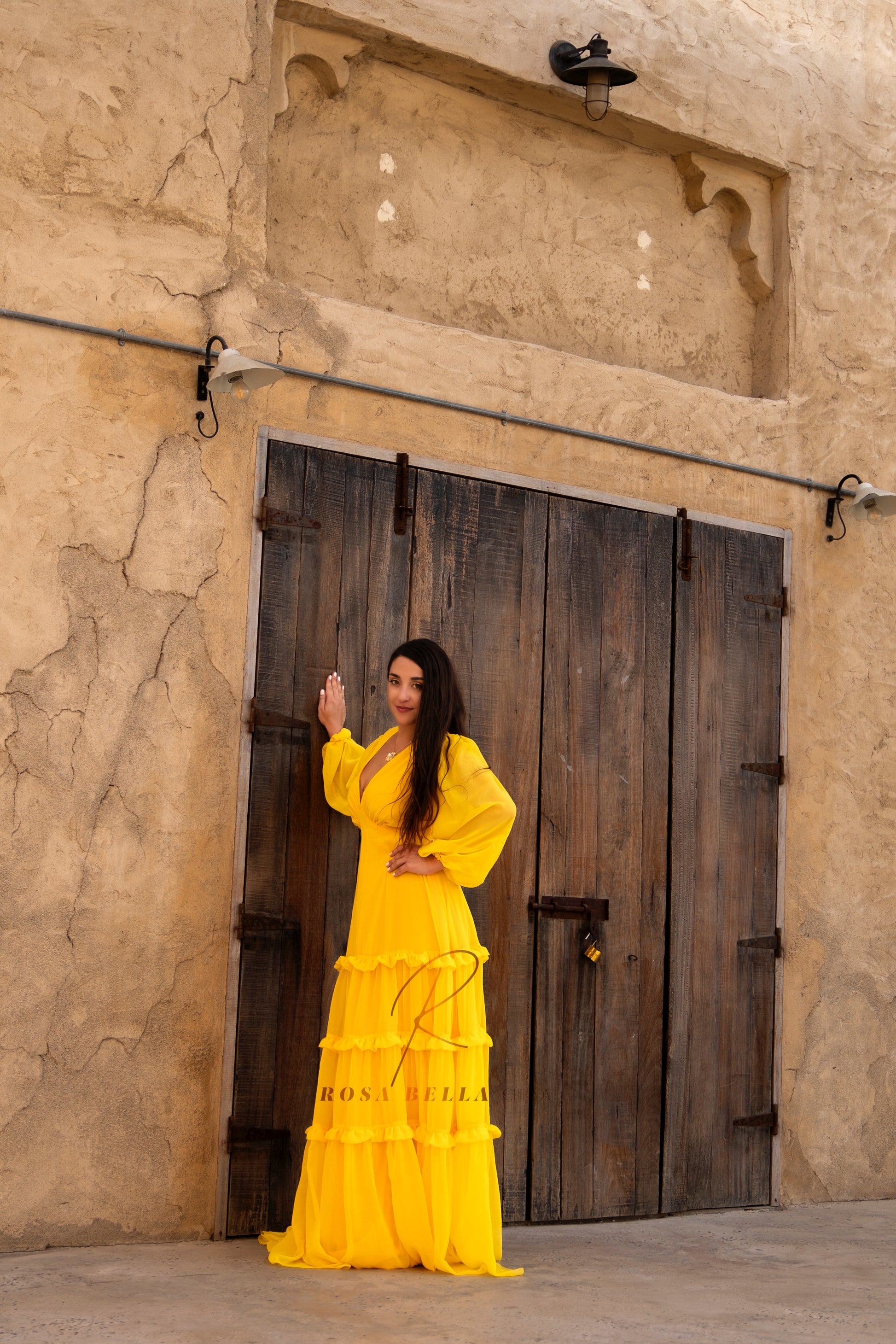 The dress is a classic and fresh maxi dress, accentuating the shape for the women, is made using chiffon material with buttercrepe for lining.